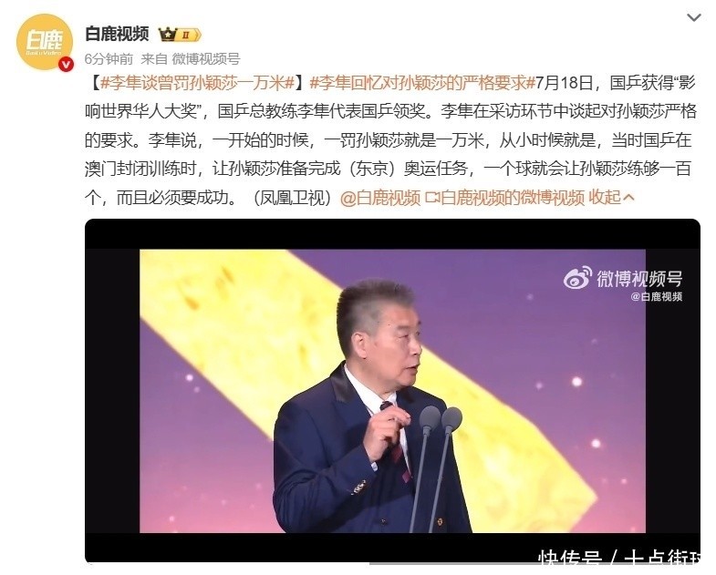 国乒获影响天下华东谈主大奖!李隼代表领奖,并爆料曾罚孙颖莎一万米