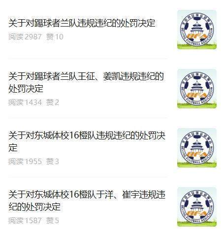 北京市足协发布处治决定,中青赛北京赛区U10组东城体校16橙队和踢球者兰队在比赛中互射本方球门,颓败比赛形成恶劣影响,均被取消赛事履历。北京足协的公告中示意:在东城体校16橙队vs踢球者兰队的比赛中,下半场比赛踢球者兰队邻接射入本方球门3球,东城体校16橙队邻接射入本方球门2球。两队的颓败比赛形成恶劣影响,均被取消比赛履历,并被通报品评。此外东城体校16橙队主阐述崔宇、领队于洋,踢球者兰队主阐述姜凯、领队王征,也均被通报品评,并不容参加北京市足球行径一年。